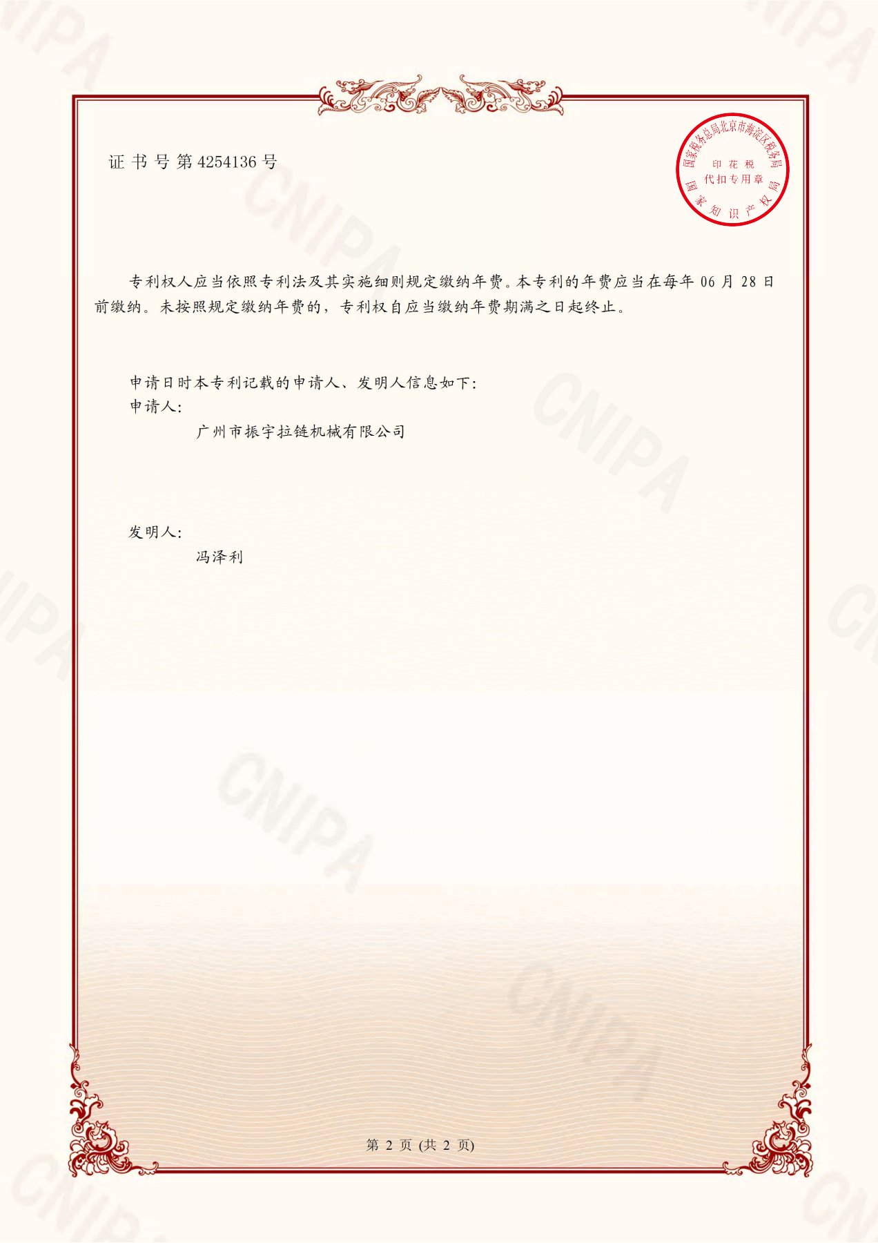 Certificate Of Symmetrical Single Teeth(Performed) Assembly Machine
